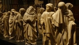 Le motif des pleurants dans l’art funéraire n’est pas nouveau, il semble que ce soit au milieu du XIIIème siècle qu’apparaît l’idée de représenter le cortège des funérailles dans toutes ses composantes et dans toute son émotion. Après Claus Sluter, ce sont les sculpteurs Claus de Werve, Jean de la Huerta et Antoine le Moiturier qui oeuvrent sur les drapés et les figures des pleurants.